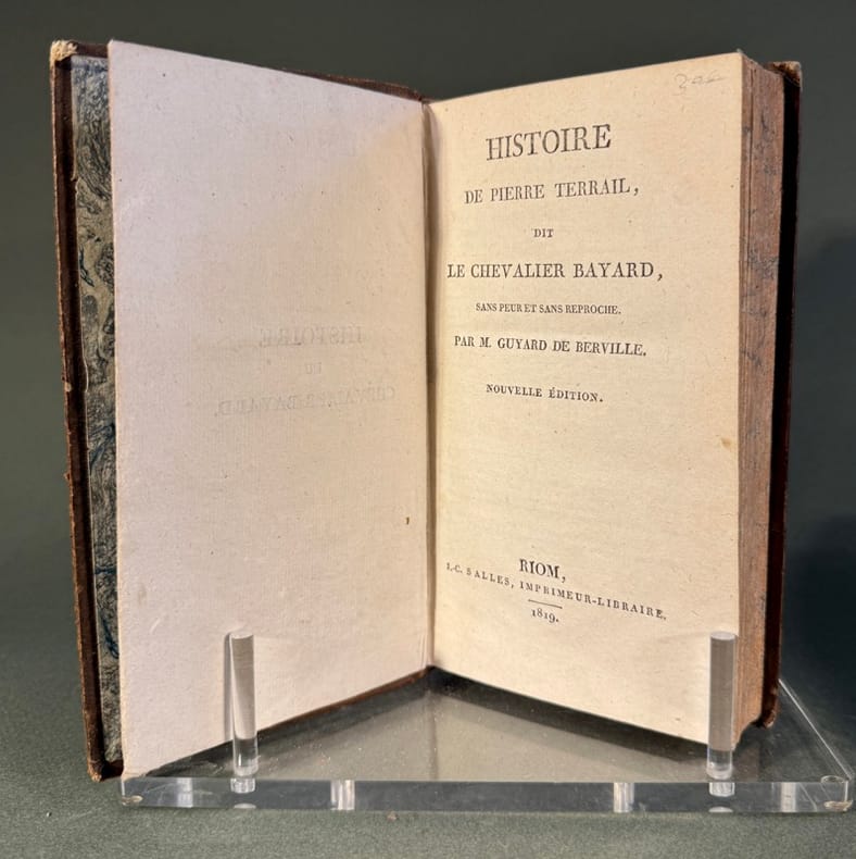 Guyard de Berville (1697-1770) publie en 1760 cette “Histoire de Pierre Terrail dit le chevalier Bayard”, reproduisant le livre du Loyal serviteur, avec de nombreux ajouts romancés.
