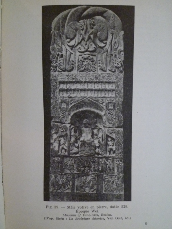 Rare collection de planches ayant pour thèmes les animaux chinois dans les différents arts Chinois. "Cet album est né d'une exposition des Animaux dans l'Art Chinois, organisée au Musée Cernushi, en mai et juin 1922, par la Ville de Paris. On y vit surgir bon nombre de pièces importantes empruntées aux collections de Paris, de Londres ou de Bruxelles; ces oeuvres s'éclairaient les unes les autres; leur contact amenait des comparaisons; s'il est vrai que certains chaînons y soient apparus, les organisateurs n'auront pas fait oeuvre vaine. Le présent album enregistre ces résultats; peut-être en permettra-t-il de nouveaux, en offrant des matériaux aux chercheurs." (Extrait de l'Introduction).