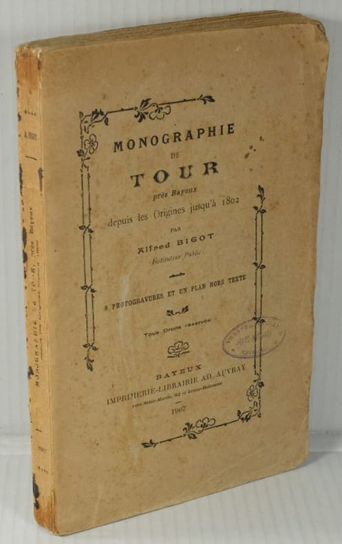 1907 Bayeux, Imprimerie, Librairie, Auvray, 1907, 1 Volume broché, 240 x 155 mm. 191 pp. Ouvrage orné de 9 Photogravures, hors texte, sous serpente et Plan dépliant, in fine, corps d'ouvrage en bonne condition, usures d'usage prononcées au dos et plats, manque de papier, en l'état.