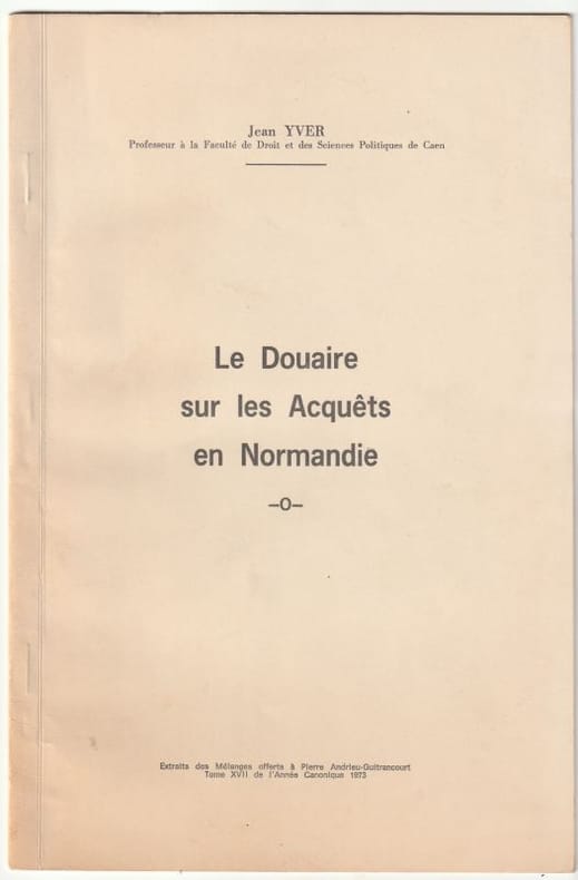 1973 Extrait des Mélanges offerts à Pierre Andrieu-Guitrancourt,Tome XVII de l'Année Canonique 1973, Troyes, Imprimerie La Renaissance, 1973,1 Volume broché, 240 x 157 mm. pagination continue, Envoi autographe signé de l'Auteur, bel exemplaire.