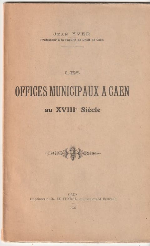1931 Caen, Imprimerie Le Tendre, 1931,1 Volume broché, 227 x 140 mm. pagination continue. bel exemplaire.