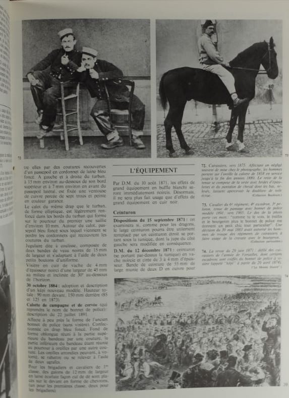 Argout Editions "Collection Armes et Uniformes" 1981, in-4 (30,5 x 21,5 cm) relié skyvertex rouge de l'éditeur sous jaquette illustrée, 72 p. (très bon exemplaire) Documentation très complète sur cette arme emblématique de la cavalerie lourde, illustrée à toutes les pages de photos d'époque.