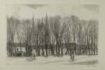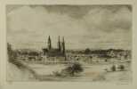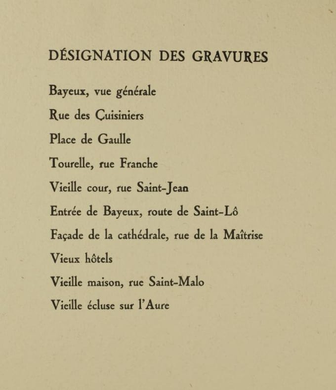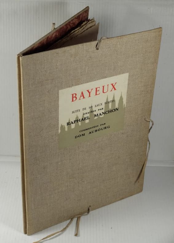 1936 Caen, Imprimerie Malherbe, s.d. [1936] 10 Eaux Fortes sous serpente et Chemise toile grège, 395 x 290 mm. fermée par 3 lacets, Commentaires et introduction, 3 ff. par Dom Aubourg,Rare exemplaire, en excellente condition.