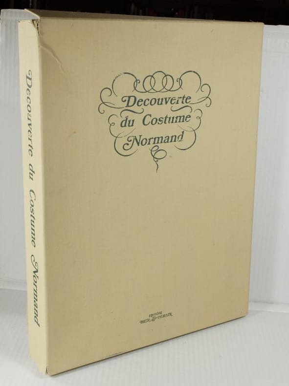 1974 Sans Lieu, Editions Hier & Demain, 1974,1 Coffret, 395 x 293 mm. 60 Planches, Avant-propos et Légendes des Planches proposées,Livret de 23 pp.Tirage limité à 999 Exemplaires numérotés60 Planches de Costumes normands en couleurs et quelques-unes extraites de la Normandie illustrée,hormis un petit accident angulaire en tête,du reste, excellente condition.
