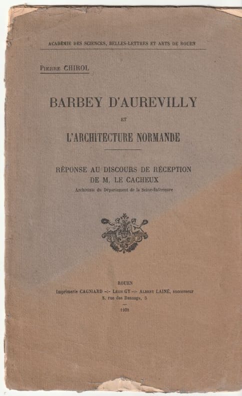 1928 Académie des Sciences, Belles-Lettres et Arts de Rouen, Rouen, Imprimerie Cagniard, 1928,1 Monographie brochée, 225 x 143 mm. 17 pp. petits manques de papier, première de couverture détachée, du reste, bonne condition.