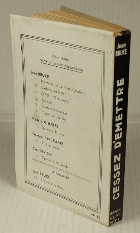 Jean Alexandre Brochet, dit Jean Bruce, écrivain français, né le 22 mars 1921 à Paris et mort accidentellement le 26 mars 1963. Il est connu pour être l'auteur des aventures de l'agent secret Hubert Bonisseur de La Bath, alias « OSS 117 », narrées dans la série littéraire du même nom et dont de nombreuses aventures ont été adaptées au cinéma à partir des années 1960.Couverture signée Michel Gourdon, auteur de plus de 3500 Illustrations aux Editions Fleuve Noir. Il est le frère du non moins célèbre Aslan, dessinateur de Pin-ups dans le magazine "Lui".