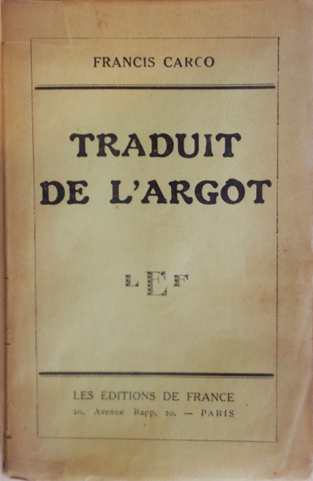 OUVRAGE E NFRANCAIS TRADUIT DE L'ARGOT. Classification Dewey : 447.09-Argot
