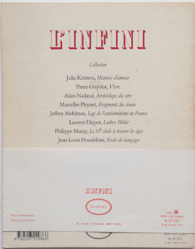 Denoël, 1983. Revue trimestrielle in-8°br. litterature/Philosophie/Art/Science/Politique. Textes de: Milan Kundera - Julia Kristeva - Sylvie Richterova - Eva Le Grand - Jean-Toussaint Desanti - Alain Kirili - Marc-Edouard Nabe...etc. Bandeau. Ill.