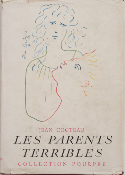 Paris 1938 1 vol. broché plaquette in-8, agrafée, couverture illustrée par Cocteau, non paginée (36 pages). Rare programme pour la création des "Parents terribles", avec Alice Cocéa et Jean Marais dans les rôles principaux. Texte de présentation de l'auteur, 8 photographies et de nombreuses publicités. Couverture légèrement salie, avec un petit dessin à l'encre bleue imitant le style de Cocteau sur le second plat.