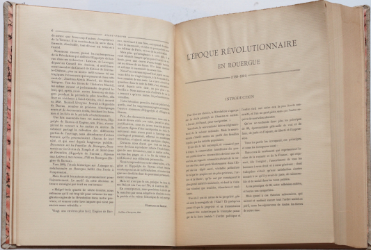 Rodez, Imprimerie Carrère, s.d. (circa 1905-1910). In-4 rel. toil. Pièce de titre au dos. Dos et couv. d'origine conservés. Texte réparti en cinq chapitres sur deux colonnes. In fine, Notes et Documents Divers. 536 p. Légères salissures ht du 1er plat et au dos (cf. images proposées). Bel état d'ensemble.