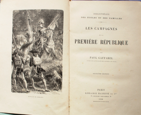Gaffarel, Paul. Les Campagnes de la Premiere Republique. In English /Gaffarel, Paul. Les Campagnes de la Premiere Republique. Illustre de 66 gravures et 9 cartes. Neuvieme edition. (Biblioteque des Ecoles et des Families. in French. Paris. Librairie Hachette et Ciege. 1907. 352 p. We have thousands of titles and often several copies of each title may be available. Please feel free to contact us for a detailed description of the copies available. SKUalb3c0be9541430019d.