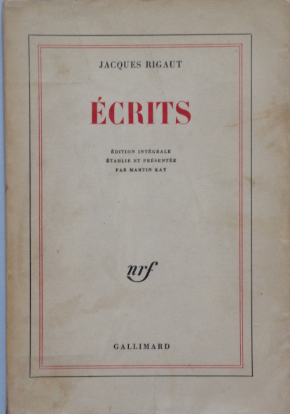 Gallimard, 1970. In-8° br. rabats. Coll. blanche. En frontispice, portrait en plan américain de Jacques Rigaut. 288 p. couv. quelque peu salie.