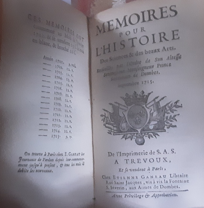 MB. Imprimerie Trevoux , in-12, 3 mois ( juillet, Août et Septembre) en 1 volume, 554 pages, reliure plein veau , dos 5 nerfs , coins émoussés, fentes de la charniere sur le premier plat, photos possibles.