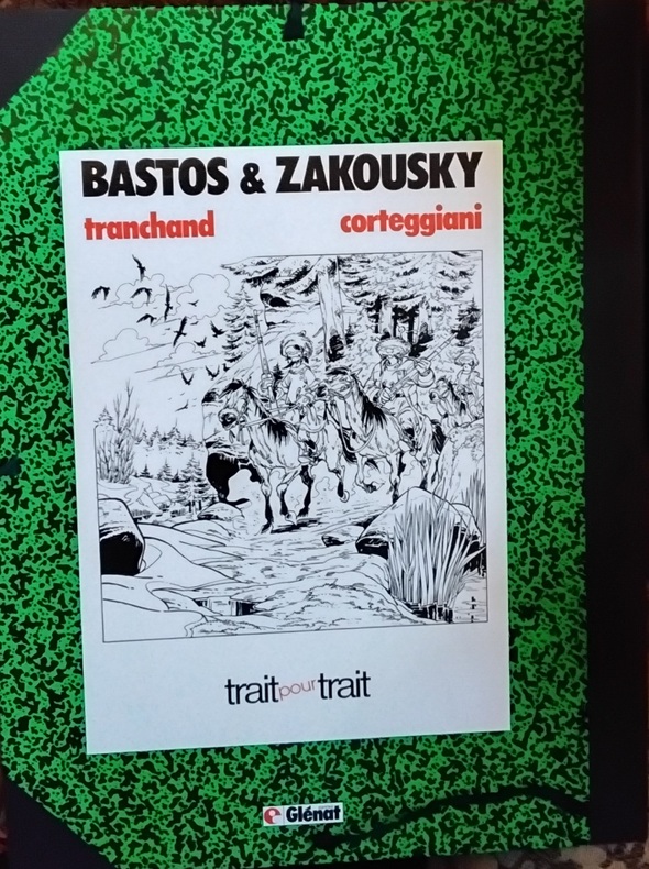 Mb. Tirage limité edition numérotée. Série Bastos et Zakousky , n° 3 . Les auteur(s) Tranchand, Pierre Corteggiani, François . A l’ éditeur Glénat , collection Trait pour trait . Edition originale 1982. Format: 40 cm X 30 cm, reliure cartonné cartonné . Tirage signé et numéroté à 500 exemplaires (et non 1500 comme indiqué sur bédéthèque). 58 pages, bande dessinée en noir et blanc + croquis inédits pour ce très grand format à la maquette caractéristique façon carton à dessin . Photos possibles