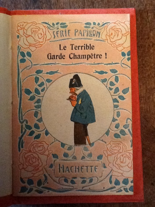138. Le terrible Garde Champêtre Hachette "série papillon" non date, in-18 : 10,5 cm X 15,5 cm, 15 pages, couverture rouge d'edition et a l'interieur la couverture illustrée du broche est en couleurs, il y a 6 petites illustrations couleurs dans le texte, petit mot perso sur l'interieur de la couverture date de 1924, photos possible