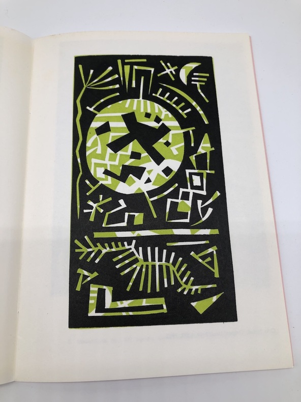 Zürich, Arcade-Presse, 1967, in-folio, (35.7x17 cm., 48 S., mit 8 (7 ganzseit.) Orig.-Farblinolschnitten von Otto Nebel, orig. Halb-Pergamentband mit RTitel in Gold und 1 wiederholten Linolschnitt auf Vorderdeckel montiert, in büttenbezogenem OSchuber. Schönes Exemplar.