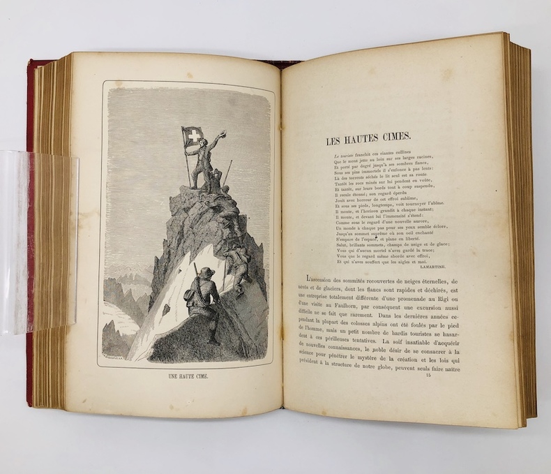 448 pp., 24x16 cm; 16 illustrations pleines pages d'après les dessins de E. Rittmeyer. Reliure d'éditeur avec ornements et titre dorés au dos, tranches dorées. Description de la nature et de la vie des montagnards. Première traduction française.