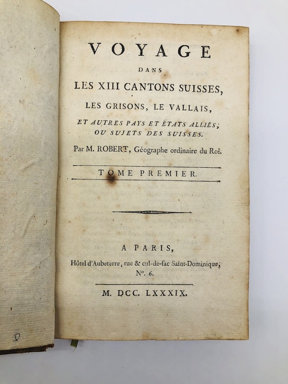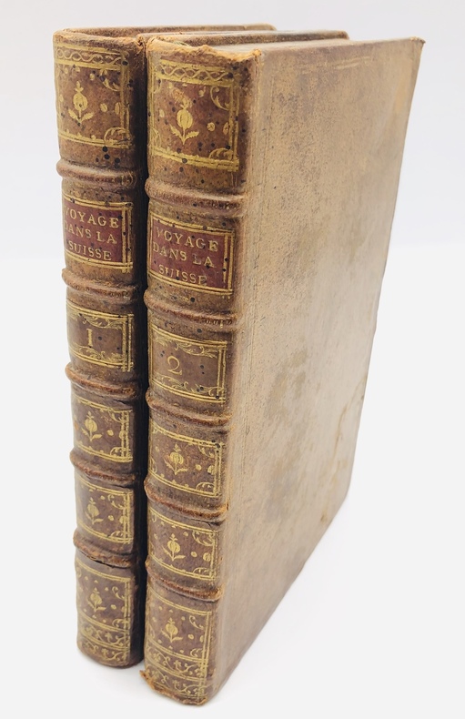 2 tomes, complet; T1: (VIII), 318 pp; T2: 397 pp; bon ouvrage écrit par le géographe ordinaire du Roi. Bonne reliure de l'époque, dos à 5 nerfs avec ornements et titre dorés.