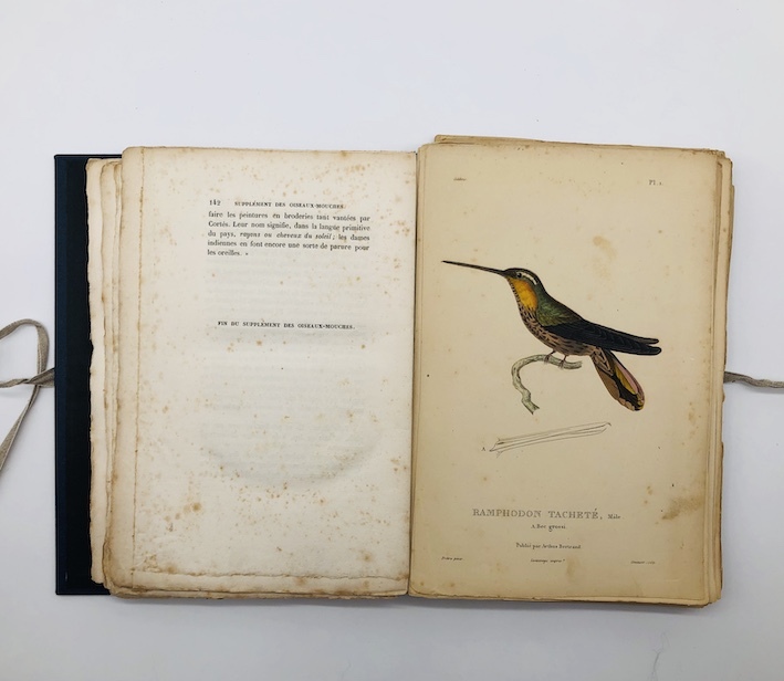 24 x 16 cm, (x) 192 pp. "Ouvrage orné de planches dessinées et gravées par les meilleurs artistes". En feuilles sous cartable avec titre doré au dos et emboîtage contemporains. 64 planches colorées d'une exceptionnelle finesse. Non daté, environ 1830. Rousseurs sur les pages de texte, rousseurs également mais très légères sur certaines planches. Très rare.