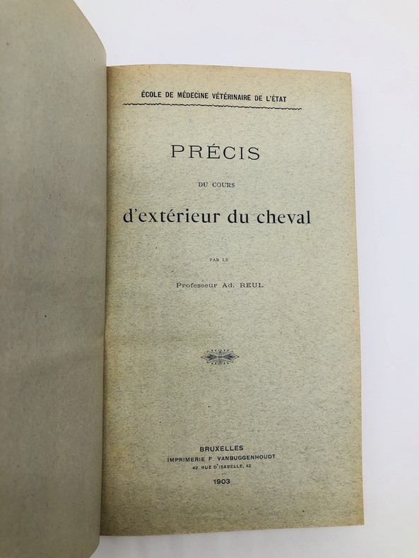 22x13 cm, 296 pp. Couverture originale conservée relié demi skilvertex à coins. Reliure frottée notamment au dos. Titre doré au dos. Très rare. Ecole de médecine vétérinaire de l'Etat.