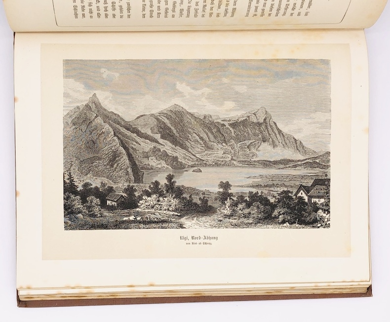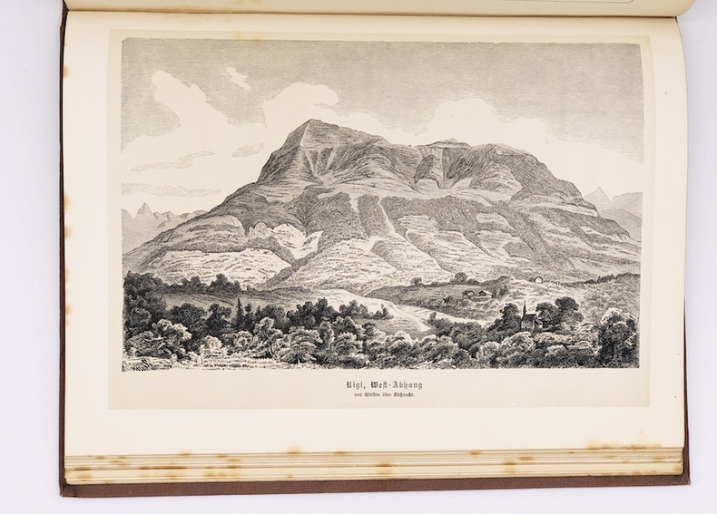 29,5 x 22 cm, (vii) 160 pp. Reliure pleine toile ornée avec titre doré sur le premier plat et au dos. Peu courant. Text auf Deutsch. Carte de la région du Rigi en couleurs sur double page. Gravures en noir pleine page. Tampon de bibliothèque sur une garde. Rousseurs éparses.