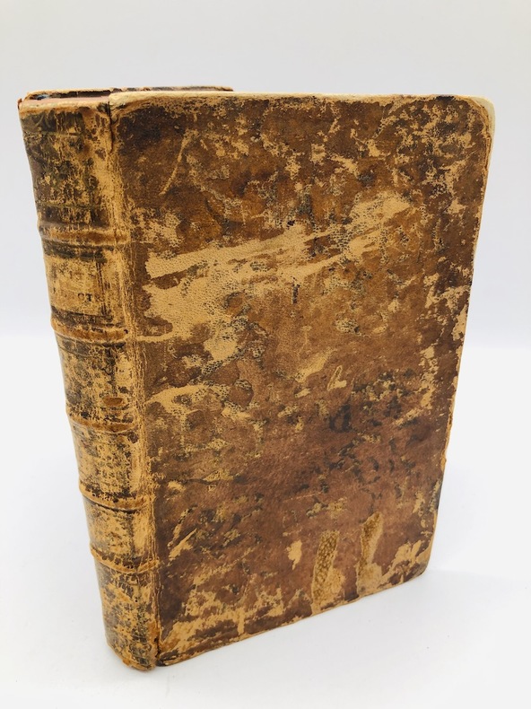 Reliure d'époque. Dos à nerfs avec filets dorés. Manque de cuir sur les plats et sur le dos. Tranches rouges.