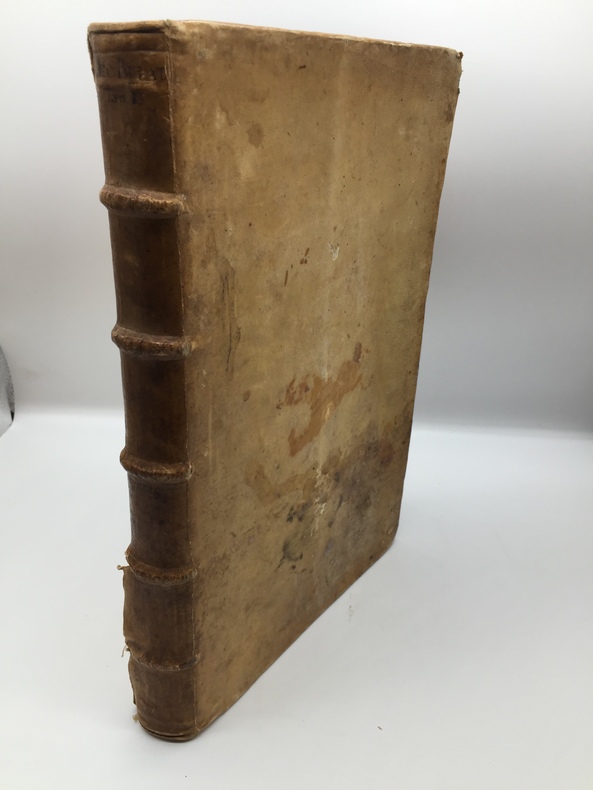 Reliure muette plein vélin d'époque, dos à 5 nerfs - 442 pp. Un mors inférieur fendu; taches sur le premier plat; rousseurs, sinon bon état de fraîcheur. Page de titre en noir et rouge avec belle gravure.