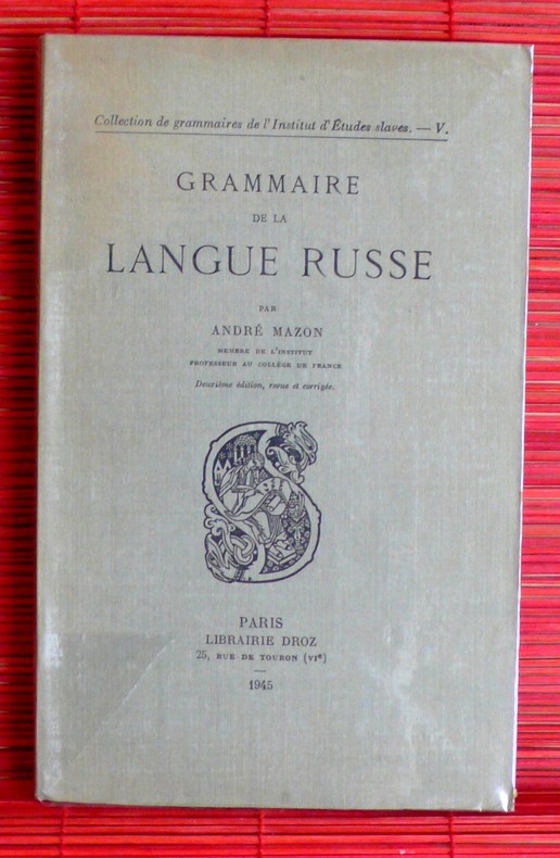 Librairie Droz, coll. « Collection de grammaires de l’Institut d’Etudes slaves » 1945 In-8 broché 22,5 cm sur 14. 301 pages. Bon état d’occasion.