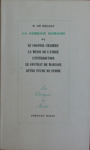 Gibert 1952 in12. 1952. Broché. La comédie humaine - tome VI: le colonel Chabert + La messe de l'amitié + l'interdiction + le contrat de Mariage autre étude de Femme --- les classiques du monde