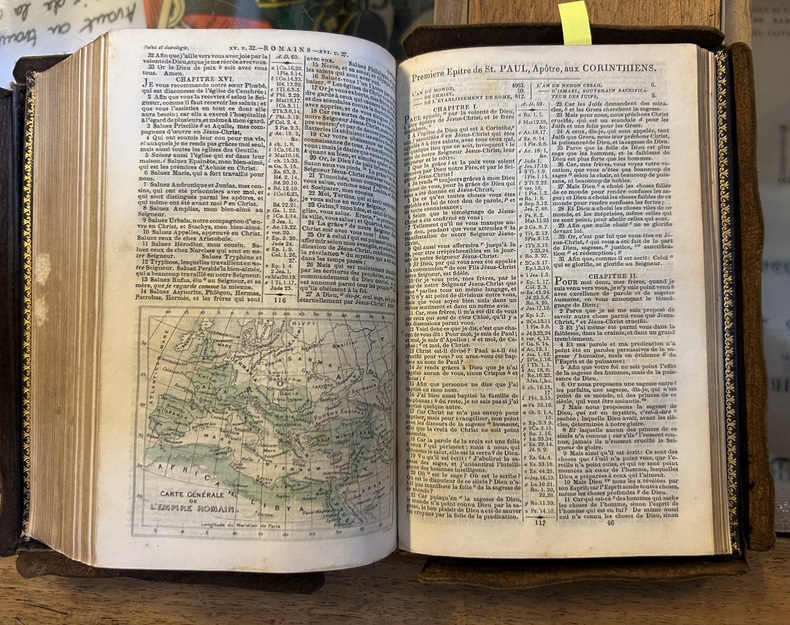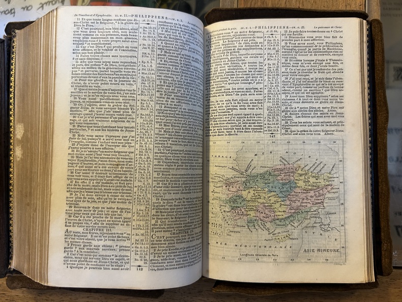 5 magnifiques cartes géographiques : Pays de Canan, Tétrarchies de Palestine, des lieux visités par St Paul, de l'Empire romain et de l'Asie Mineure.
