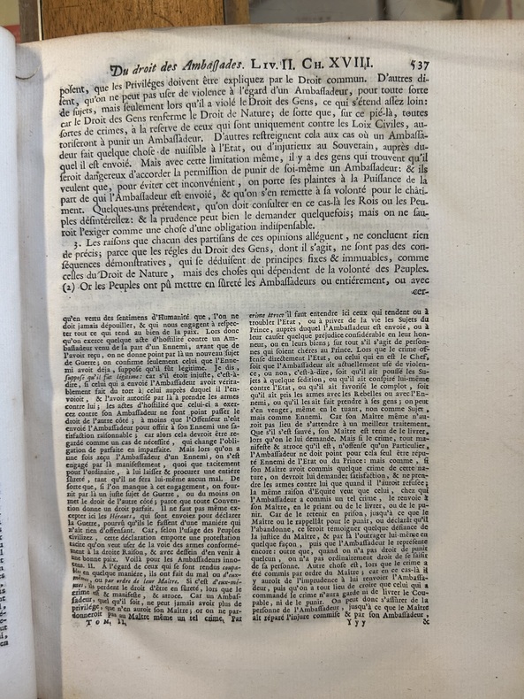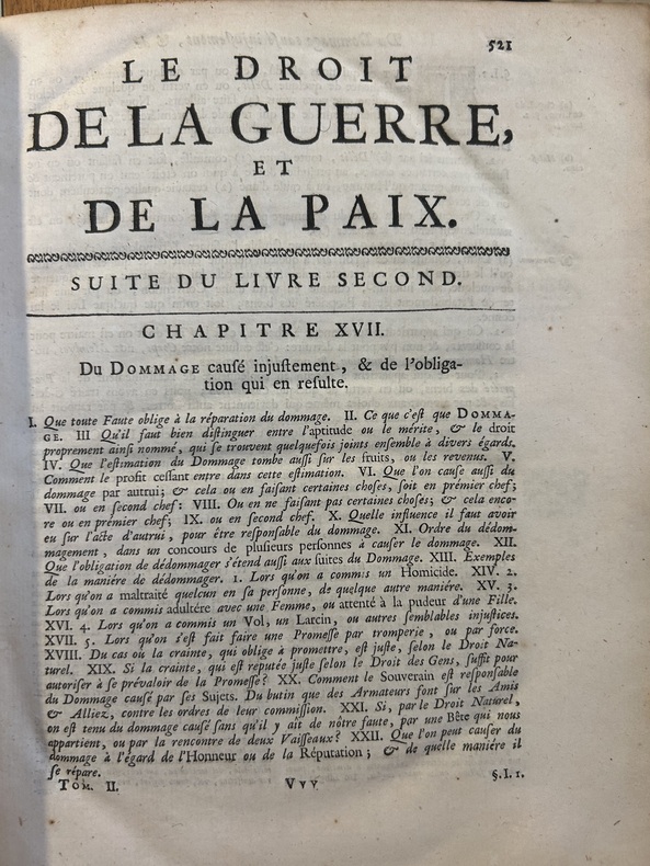 Nouvelle traduction par Jean Barbeyrac, Professeur de Droit à Groningue, et membre de la Société royale des Sciences à Berlin. Avec les notes de l'auteur même, qui n'avaient pas encore paru en français; et de nouvelles notes du traducteur. Tome second. Chez Pierre de Coup, Amsterdam 1724. Avec privilèges de nos Seigneurs les Etats de Hollande et de Westfrise (Frise-Occidentale).
