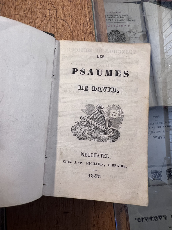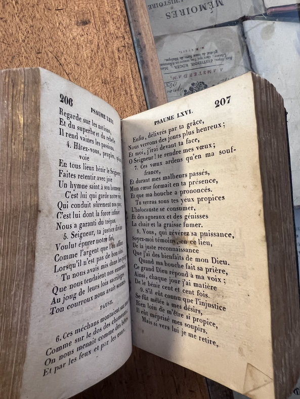 Paris - Valence imprimerie et librairie de E. Marc-Aurel 1847 in 12 (18x11) 1 volume reliure plein chagrin maroquiné vert, dos lisse orné de caissons à froid, plat supérieur orné des lettres dorées PA, tranches dorées, 503 pages, quelques petites rousseurs sur les 8 premières pages. Psaumes avec portées de musique notée. Bel exemplaire ( Photographies sur demande / We can send pictures of this book on simple request )