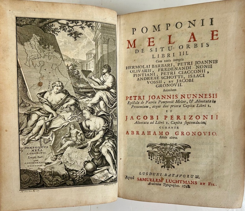 The first latin work on geography, here edited by the Dutch philologist Abraham Gronovius (1695-1775). The Spaniard Pomponius Mela wrote his description of the world (known as De chorographia or De situ orbis) about AD 44. It remained influential until the Reanaissance and its voyages of explorations. This Leiden edition also contains the commentraries of Pedro Juan Nuñez and Jacob Perizon. - Few notes by an old hand in the first fly-leaf. - Contemporary vellum, with ms. title on head of spine. Provenance: Bookplate of the Viennese economist Franz PollackParnau (1903-1981).