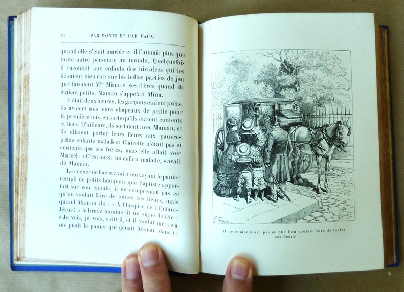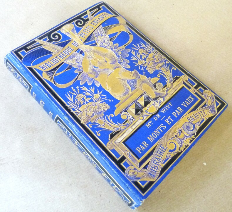 1882 Paris, Hachette, 1882. Collection "Bibliothèque des Petits Enfants". Un volume de format petit in 8° de 336 pp., illustré de 54 compositions de A. Ferdinandus, dont certaines en pleine page. Reliure de l'éditeur en pleine percaline bleu-nuit, somptueux décor doré dans un encadrement noir, dos doré et orné Entièrement doré sur tranches.