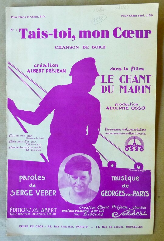 Paris, Edition Sallabert, 1931. Une partition de 4 pp., chant seul; couverture illustrée.