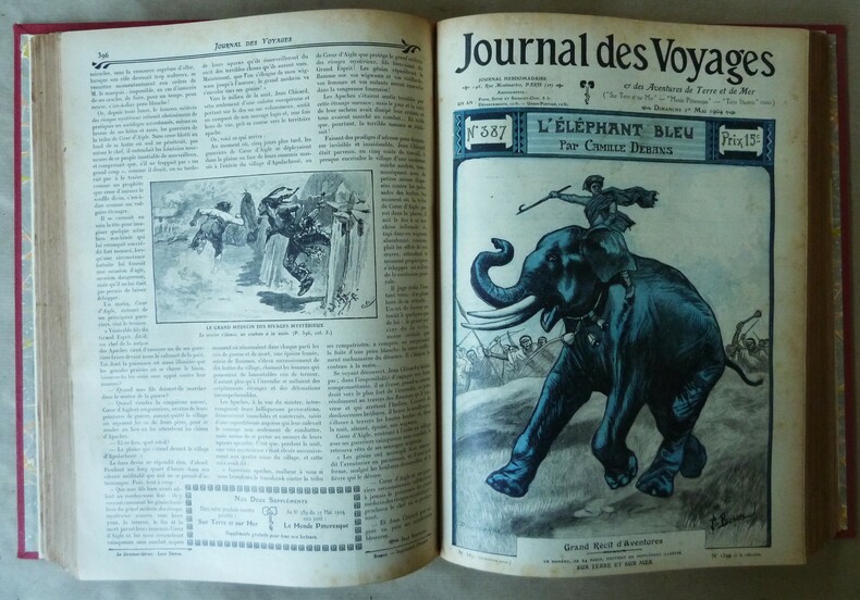 Décor du cartonnage très frais, angles légèrement frottés. Petit manque de texte à une page. Bon état. Contributions de nombreux explorateurs, d'auteurs célèbres: Paul d'Ivoi, Boussenard, Le Faure...
