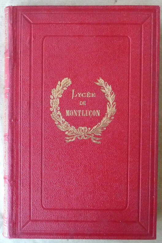 1898 Paris, Firmin-Didot, 1898. Un volume de format in 8° de 160 pp.; illustré d'un frontispice et de 2- reproductions de documents de diverses époques. Reliure de l'éditeur en pleine percaline rouge, dos orné et doré, couronne de Laurier avec la mention Lycée de Montluçon sur le 1er plat. Titre doré. Entièrement doré sur tranche.