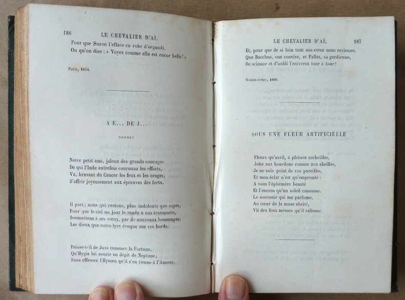1854 Paris, Victor Lecou, 1854. Un volume de format petit in 12° de 286 pp. Reliure de l'époque en demi chagrin vert Empire, caissons à décor de guirlandes dorées au dos titre doré.
