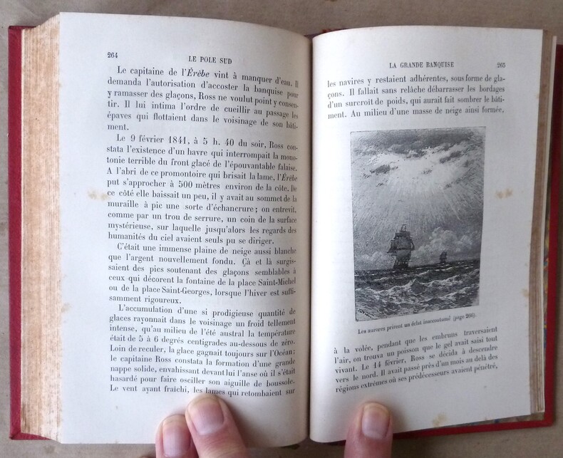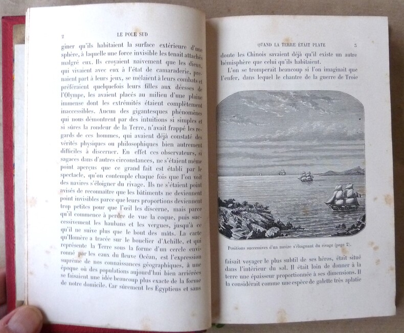 Paris, Hachette, 1889. Bibliothèque des Merveilles. Un volume de format in 12 de 2 ff., 316 pp.; illustré de 53 vignettes par Th. Weber. Reliure de l'époque en demi chagrin rouge cerise, dos richement orné de caissons dorés, titre doré. Sur le 1er plat, couronne de lauriers dorés avec la mention "Lycée de Montluçon"; étiquette de prix au verso.