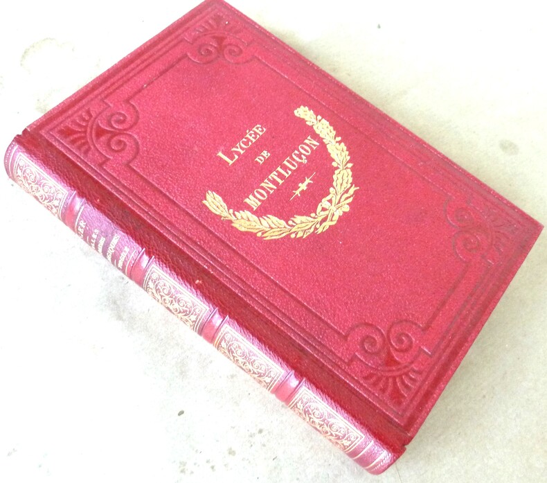 1890 Paris, Hachette, 1890. 2ème édition. Un volume de format in 12 de 2ff., 378 pp.; deux cartes dans le texte. Reliure de l'époque en demi chagrin rouge cerise, dos richement orné de caissons dorés, titre doré, encadremnts estampés à froid sur les plats, au 1er plat , couronne de lauriers dorés avec la mention "Lycée de Montluçon", au verso étiquette de prix.