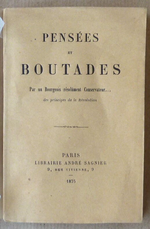 Paris, André Sagnier, 1875. 1 vol. in-32 br., couv. impr., 58 pp., (1) p. Rousseurs. [C18]