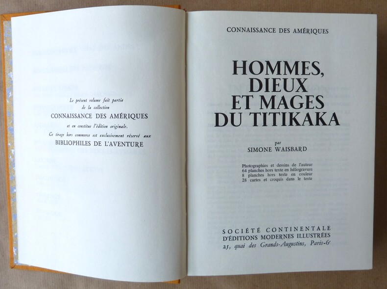 1970 Paris, Société Continentale d'Editions Modernes Illustrées, 1970. Collection "Connaissance des Amériques". Un volume de format in 8° carré de 356 pp.; photographies et dessins de l'auteur, 6' pl. Hors texte en héliogravure; 8 pl. Hors texte en couleurs; 28 cartes et croquis dans le texte. Reliure de l'éditeur en pleine toile orange; titres dorés; 1er plat illustré.