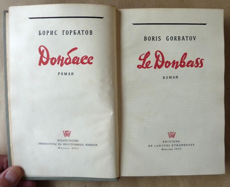 Moscou, Editions en Langues Etrangères, 1953. Un fort volume de format in 8° de 468 pp. Reliure de l'éditeur en pleine toile grise, décor estampés à froid représentant un couple de mineurs; titres en rouge ou doré.