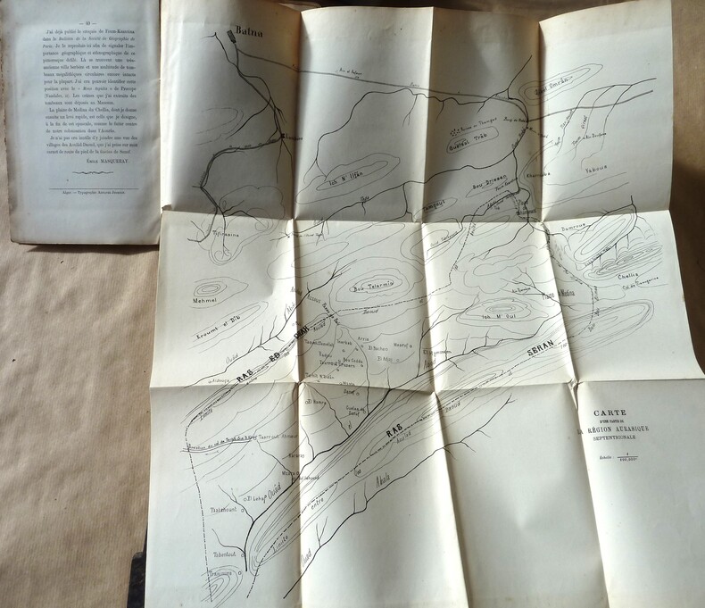 Alger, Jourdan,, 1879. In 8 broché, 40 pp. avec 3 cartes dépliantes et une vue dépliante.