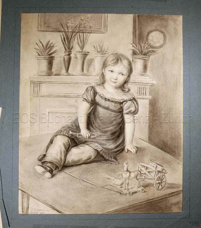 1828. Bleistiftzeichnung unten links signiert und datiert auf Halbkarton. Blattgrösse: 28,5 x 23.8 cm.