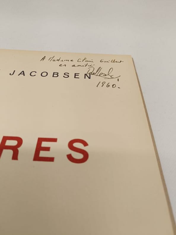 Galerie de France, Paris. Imprimé par Sorensen & co, Copenhague, 1957. Texte de I. Meyerson. Photographies en noir d'Anne Cazalis et Luc Joubert. Photographies en couleur de Serge Fouillot. Couverture cartonnée plein papier. Dos toilé, pincé, sous jaquette illustrée (petites restaurations). Photographies reproduites en couleurs et noir & blanc. 36 pages. Dim : 310 x 245 mm.