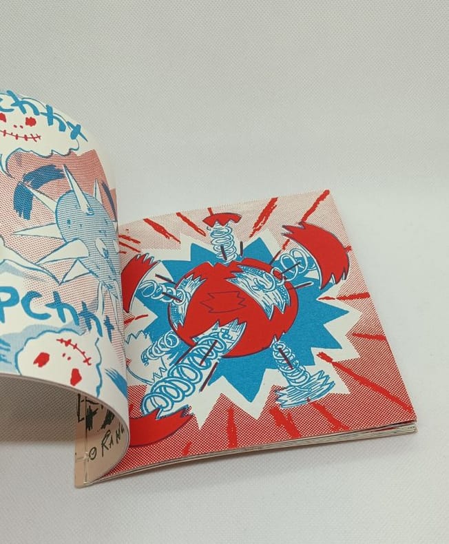 Édition du Dernier Cri, Ris-Orangis. ca.1994. Imprimé en sérigraphie. Reliure à la japonaise. Illustrations reproduites en couleurs. Dim: 162 x 158 mm. Non paginé. Tiré à 100 exemplaires.