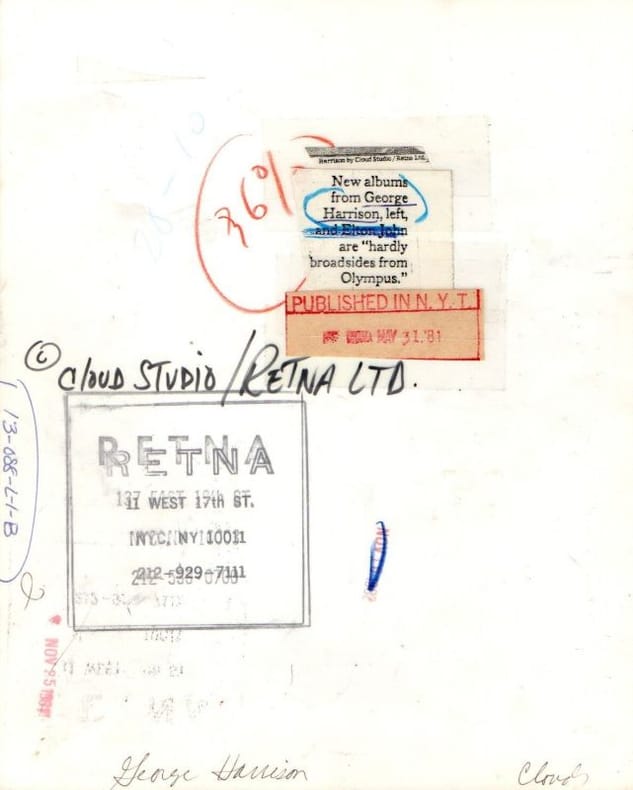 Photographie originale. Cloud Studio / Retna Ltd, 11 west 17 th st, NY. 1981. Dim: 252 x 202 mm. Nombreuses dates et notes au dos.