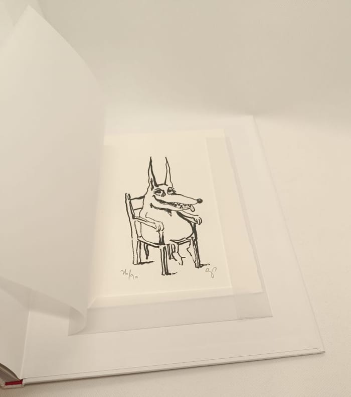 Librairie Michael Seksik. 2025. Couverture cartonnée, illustrée, cousu, tranchefile. Illustrations reproduites en couleurs. Dim: 305 x 243 mm. 70p. Tiré à 200 exemplaires, tous signés et numérotés. Un des 75 exemplaires avec une lithographie signée et numérotée par l'artiste.