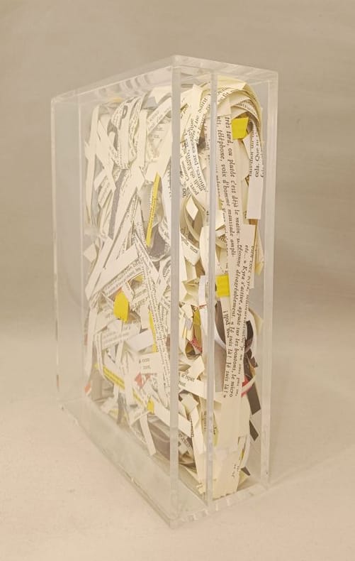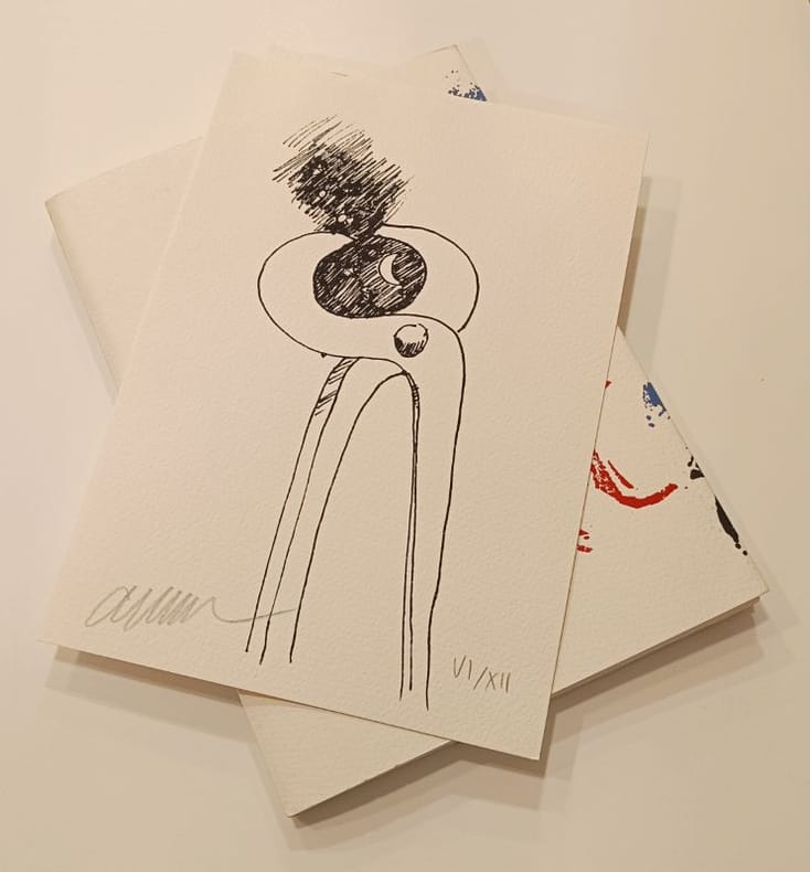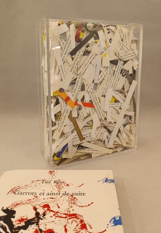 Éditions Dumerchez. 2003. Couverture souple, à rabats, illustrée d'une sérigraphie originale en couleurs. Illustrations d'ARMAN reproduites en noir et blanc. Imprimé sur Rivoli (Dim: 235x 165 mm), 78 p. Sous étui original dARMAN, "Poubelle de pilon", Plexiglas, signé par l'artiste sur le premier plat (Dim: 245 x 650 x 180 mm). Accompagné dune sérigraphie originale, signée et numérotée, et d'un poème manuscrit de Tita Reut. Tiré à quarante-neuf exemplaires, tous signés au colophon par lauteur et lartiste. Un des exemplaires réservés à l'auteure.